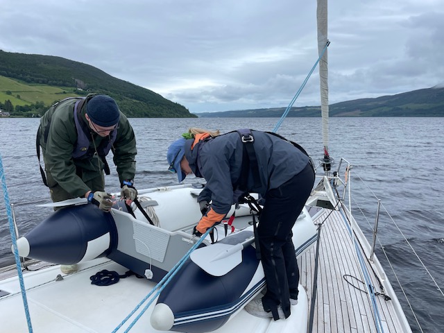 ankerdram for å feire forlovelsen til Nina og Petter etterfulgt av en koselig middag om bord. Og Petter badet i selveste Loch Ness i 12-13 graders vann.